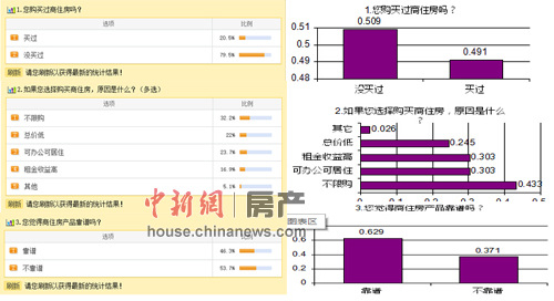 中新網房產頻道的調查結果顯示,只有20.5%的網友買過商住房,其他79.5%的網友未買過。數字100市場研究公司的結果則顯示50.9%的網友買過,49.1%沒買過。