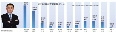 從榜單上看,華人富豪居住在大陸的最多,有1254位,占79.5%;其次是香港,有99位,占6.3%。不僅如此,前十位上榜富豪全部住在中國大陸或香港,其中6位住在大陸,4位住在香港。