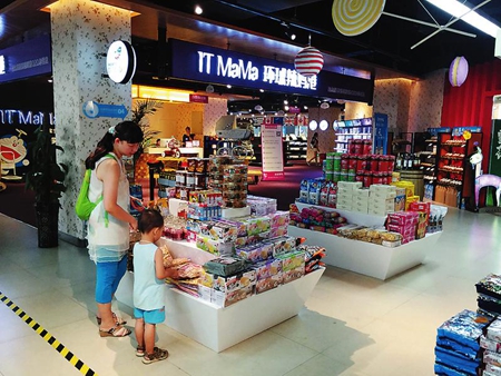 在位于西安曼蒂廣場的西北首家跨境電商“環球辣媽”線下體驗店里,一位母親正在為孩子挑選進口食品。 本報記者 李蕊 攝