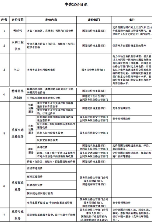 發改委發布《中央定價目錄》 自2016年1月起施行