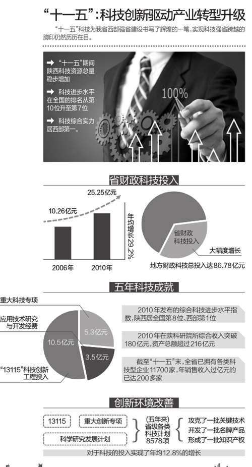 原標題:科技創新陜西發展升級“核動力” 科技是第一生產力,而創新是驅動發展的第一動力。事實證明,科技與創新的結合,將是推進我省在新常態下銳意發展的最為恢弘澎湃的動力。從“十一五”到“十二五”,我省科技