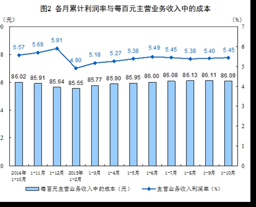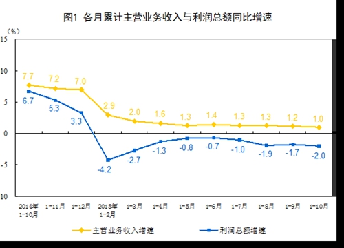 1-10月份全國規模以上工業企業利潤總額同比下降2%