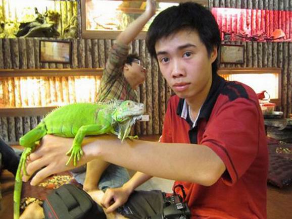 咖啡廳以小動物來做噱頭招攬生意并不是什么新鮮事,但像位于越南河內的這家專門玩蜘蛛、蛇、蜥蜴等另類寵物的Cafe卻絕不多見。 “Pet Café” 由28歲的前股票經紀人Nguyen Minh Nghia親自打理,由于5年前替朋友照看蜥蜴時深深地被這外表奇異的小家伙所迷倒,因此Nguyen決定放棄工作,前往新加坡、中國、泰國和澳洲多地搜集不同品種的爬行動物,然后帶回河內開店與同好分享。