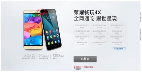 1月13日10:08,擁有至高4G占網比的華為榮耀暢玩4X全系列產品準時登陸華為商城、京東兩大平臺。得益于強勁的硬件配置、不俗的應用體驗和免預約開放購買形式,榮耀暢玩4X開賣后在極短時間內便火速售罄,用事實再次證明了其千元機爆款的實力。