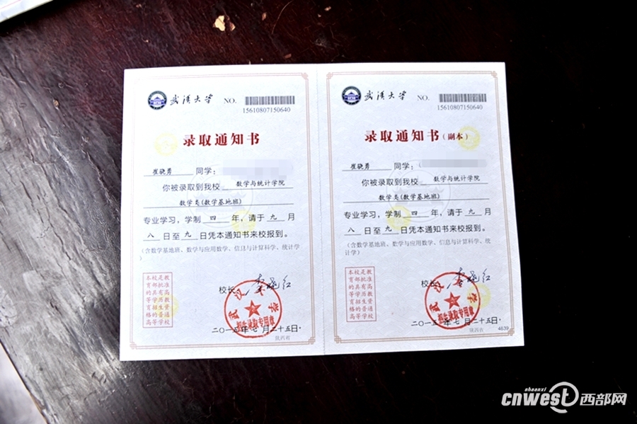 641分,2015年全國高考寧強縣第二高分成績,崔驍勇被武漢大學錄取了。