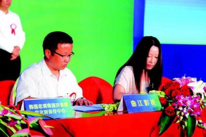 曲江影視集團(tuán)常務(wù)副總經(jīng)理喬新風(fēng)(左)與澳門有線電視臺副總裁Susan簽約 9月7日,記者從第六屆西部文博會獲悉,西安曲江影視投資(集團(tuán))有限公司將攜手澳門有線電視臺,斥資3000萬元傾力打造亞洲最全