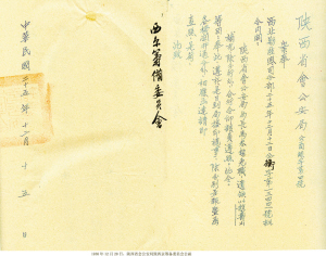 柏雪梅介紹說,該函收文機關(guān)西京籌備委員會,是1932年“一·二八”事變不久,國民黨四屆二中全會決定“以長安為陪都,定名西京”,并委派張繼等人組織成立,直屬國民政府。從1932年3月-1945年4月,前后進(jìn)行了長達(dá)13年的籌建工作,對西安的經(jīng)濟、社會、文化、城市建設(shè)產(chǎn)生重大影響。而此函發(fā)文機關(guān)西安戒嚴(yán)司令部,是事變中設(shè)立的重要軍事組織。