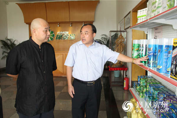 鳳凰廣州CEO劉曉明聽康綠寶集團董事長顧惠林介紹集團產品