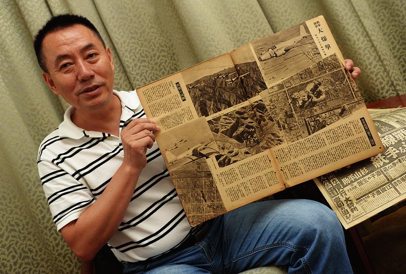畢醒世在展示自己收集的一份名為《支那事變畫報》的雜志。 新華社記者 劉瀟 攝