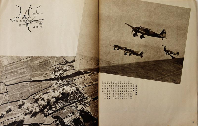 畢醒世收集的《支那事變寫真全輯》之六——《荒鷲部隊》中,一組圖片記錄了1939年1月20日,日軍山瀨部隊中的中村、兒森兩部隊空襲延安及洛川。 新華社記者 劉瀟 攝