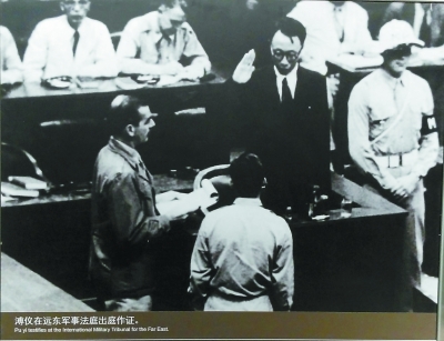隨后準備前往日本的溥儀在機場被蘇聯紅軍抓獲,在1946年8月16日,東京審判中溥儀出庭作證,作為日本侵略中國東北的直接見證人,溥儀連續出庭8天,創造了遠東國際軍事法庭兩年庭審單人作證的紀錄。他為法庭提供了日本發動“九一八事變”、扶植偽滿洲國最有力的證人證言,情緒激動時甚至拍案控訴,卻也同時惴惴于自己當年不光彩的角色,隱瞞了部分事實,開脫著自己的罪責。