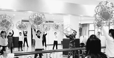 在海鹽縣文化館,“兩員”正在專業(yè)人士的指導(dǎo)下學(xué)習(xí)滾燈技巧。