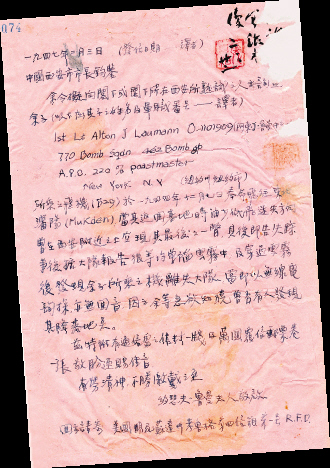 盡管查詢結(jié)果令人失望,但信件中所透露的信息,為我們呈現(xiàn)了抗日戰(zhàn)爭(zhēng)時(shí)期美國(guó)航空隊(duì)在中國(guó)軍民的支援下,沉重打擊日本侵略,自身也付出慘痛代價(jià)的真實(shí)一幕。