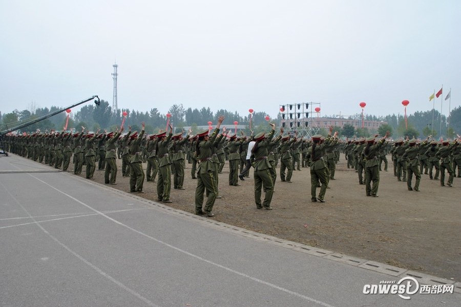 西安城建學院軍訓表演 兩千女生齊跳“小蘋果”