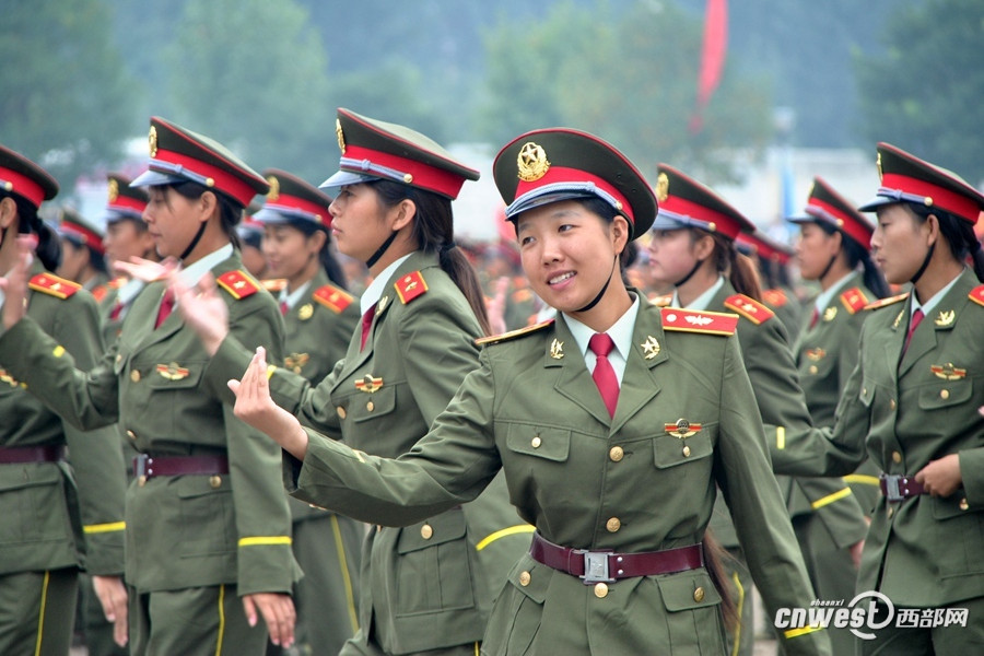 西安城建學院軍訓表演 兩千女生齊跳“小蘋果”