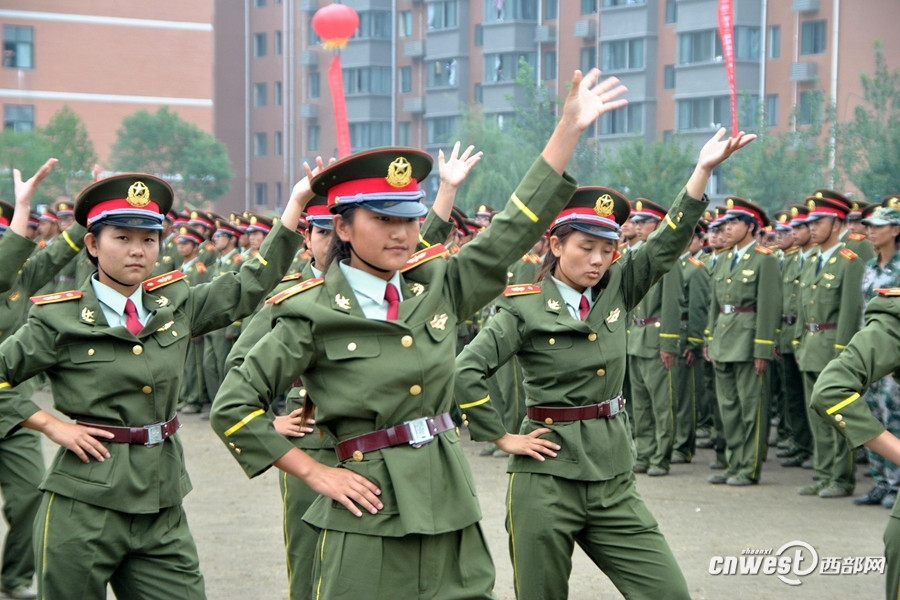 西安城建學(xué)院軍訓(xùn)表演 兩千女生齊跳“小蘋果”
